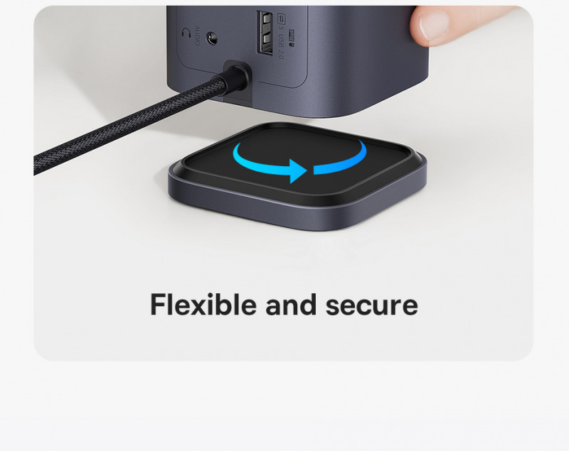 تصميم مبتكر قائم: يتميز بتصميم أنيق قائم مع قاعدة مغناطيسية لتسهيل الإعداد وإدارة الكابلات. تعرض الشاشة المدمجة حالة الاتصال لكل منفذ، وزر قفل الشاشة يتيح لك تأمين المعلومات الحساسة بلمسة واحدة.